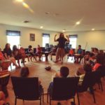 From July 24th-29th, 49 kids ages 6-13 from Berea and Richmond came together at the Friends’ Meeting House to learn skills of conflict resolution, mindful meditation, connecting with nature, media literacy, and cooperative leadership. It took the forms of practicing yoga poses, drumming in a giant circle, dancing contra dances, being trained to interrupt violence before it starts, building bookshelves for Habitat for Humanity, making our own ads for peace and nonviolence, touring a sustainable farm, hearing from justice leaders old and young, and much, much more! No wonder everyone is exhausted!