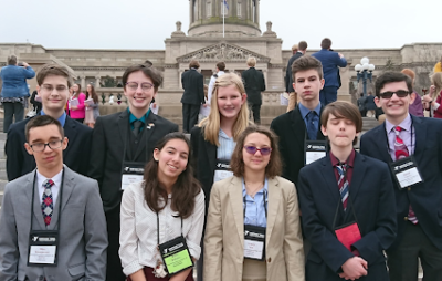 Sayer Kobersmith & and Eli Hayden and group on the steps of the Capitol in Frankfort for the Kentucky Youth Assembly. The bill Sayer was working on with a team of 3 or 4 others was signed into law by the KYA Governor after passing the house and senate, of course. He had a great time, learned a lot and looks forward to returning.
