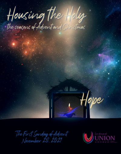One:  All of us have caught ourselves looking for signs. Year, now nearly past, has been fraught with struggles. The pandemic has laid bare, and widened, economic disparity locally and globally. Our families have known illness and hardships unseen before, and the future is as yet uncertain. As we enter the Advent season, we who seek the sign of Christ, are working and hoping that the Holy will be born anew out of revolutionary love–offering respite, sustenance and care, opening the doors ever wider to those seeking shelter from the onslaught of life.  No one church, no one person, can do it all, but each can do something. As we study the biblical prophets that call us to care for our neighbors and “make room in the inn,” the lonely and frightened spaces within us are filled with the light of Hope, Peace, Joy, and Love.