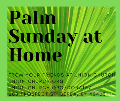 We can’t be together in person, but we can be in Spirit!! Come by the church from 1-5 pm and we’ll have some Palms out on a table near the handicap ramp AND a paper copy of some worship suggestions for you to share at home!! On Sunday, come to church online https://union-church.org/live-broadcast/. If you can donate to the church’s ministries, that would be much appreciated, and put to good use! https://app.easytithe.com/App/Giving/union