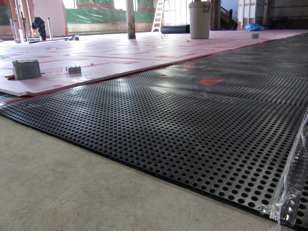 - Underlayment system channels any water to drains under the floor.